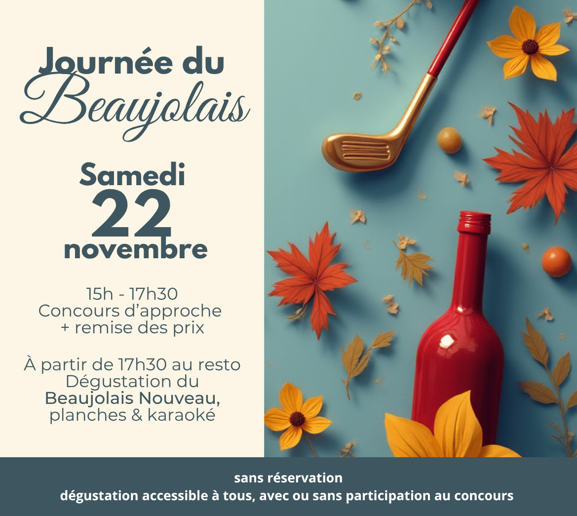 Le samedi 22 novembre 2025, Golf Up organise un concours d’approche exceptionnel à l’occasion de l’arrivée du Beaujolais Nouveau.